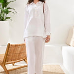 Effortless style meets playful comfort with the Amelia Pop Over Set! This dynamic duo features a relaxed long-sleeve pop-over tunic finished with eye-catching contrast stitching that adds personality to your everyday look. Pair it with the matching pull-on ankle pants, also detailed with striking contrast seams for a coordinated, put-together vibe. The tunic's generous fit makes it perfect for layering, while the elastic-waist pants deliver all-day comfort without sacrificing style. Whether you're running errands or meeting friends, this set keeps you looking polished and feeling great.