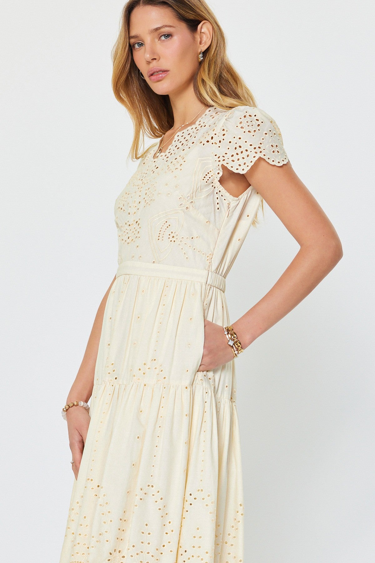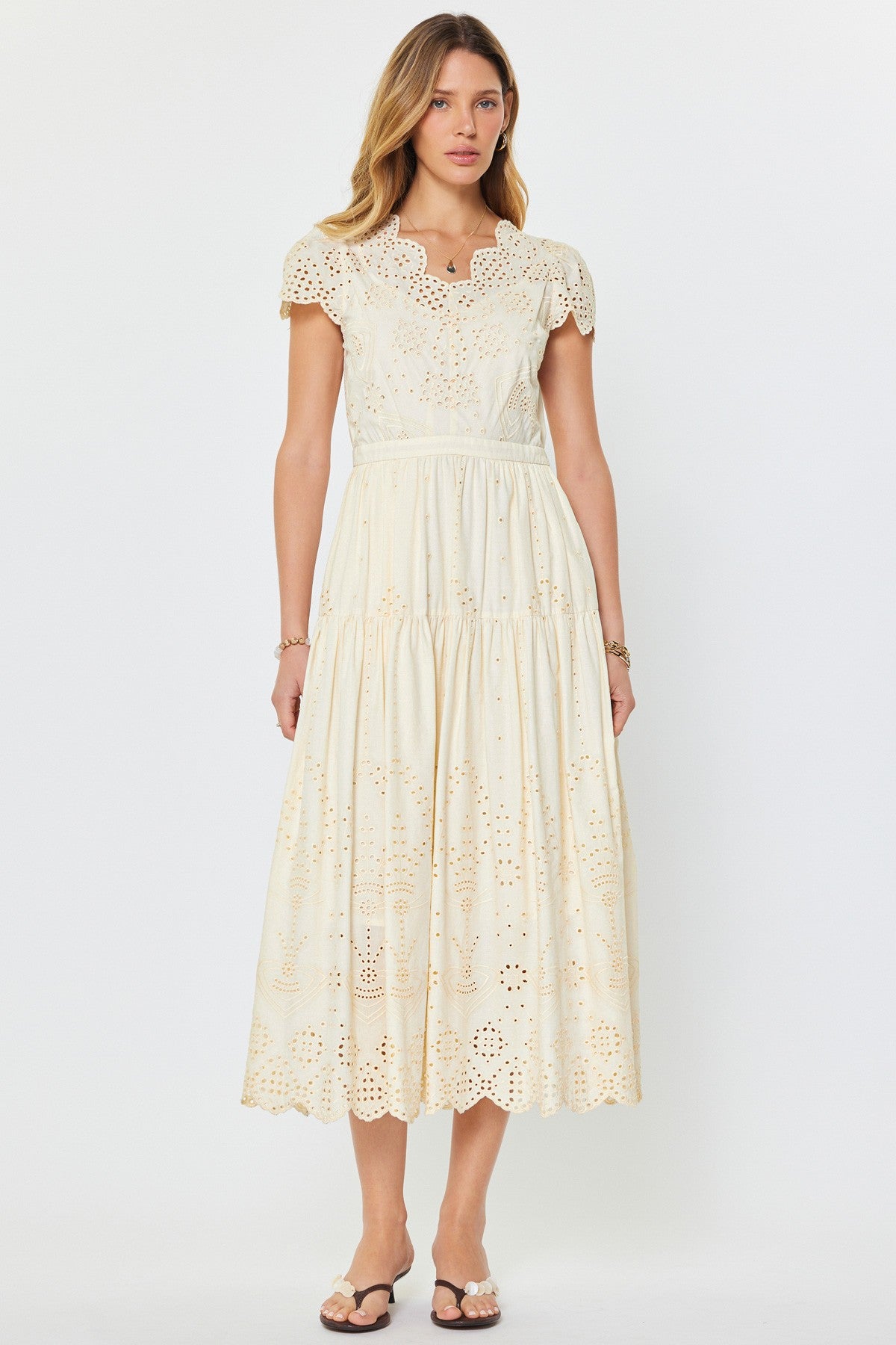 -Scalloped cap sleeves