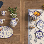 18" X 72" Block print cotton table runner made from 100% cotton.  Spot clean only.
