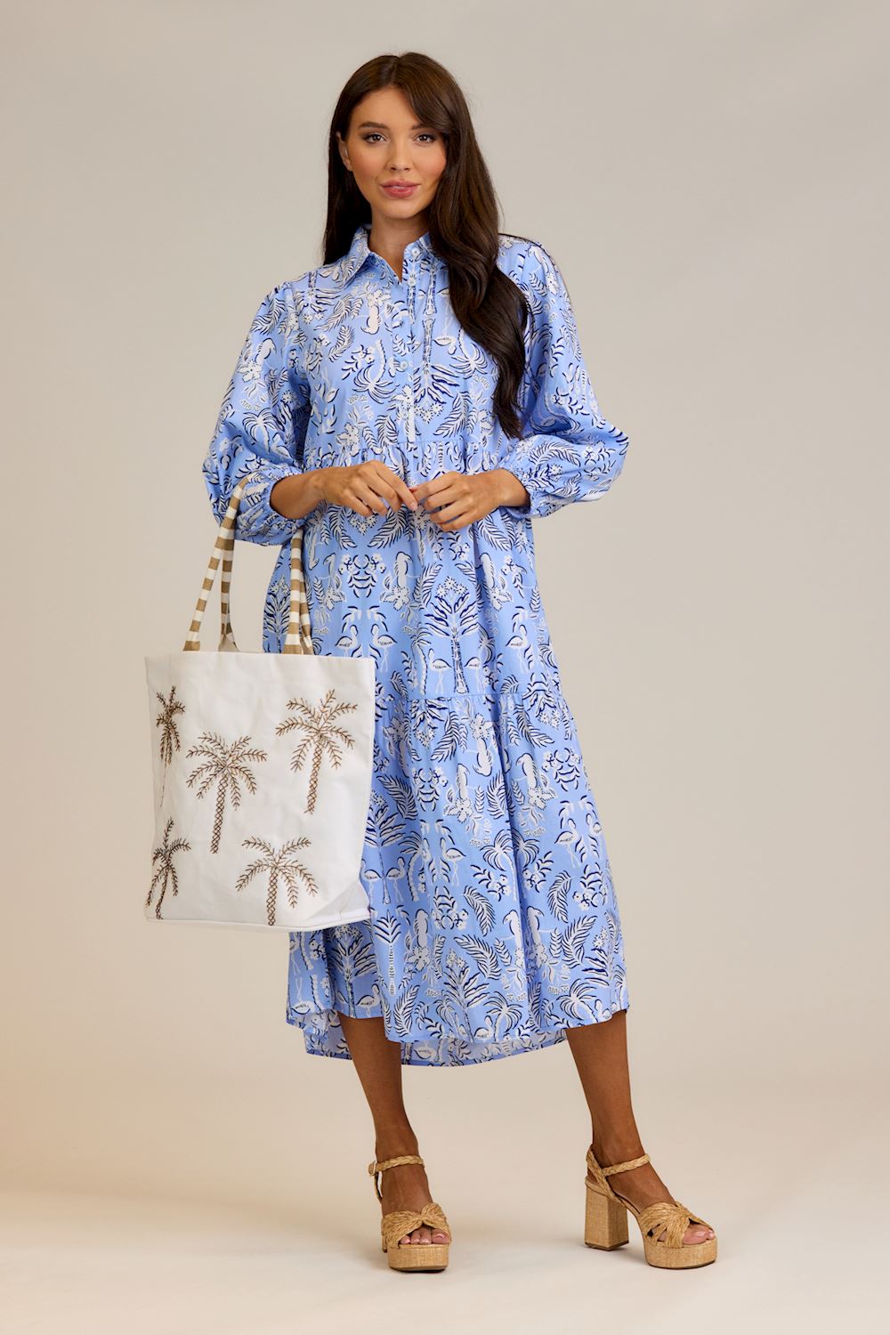 Effortless elegance meets everyday comfort in this cotton poplin midi dress. The Booker features a polished pearlized button chest placket and bracelet-length sleeves with elastic openings for a refined silhouette. Approximately 48" from shoulder to hem on size small, this versatile piece transitions seamlessly from office to weekend. The structured poplin fabric drapes beautifully while maintaining its shape throughout the day.