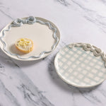 Set a lovely table with this beautiful set of two ceramic platters with dimensional bow accents.
