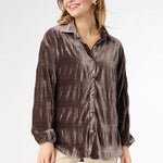 Get ready to dazzle this holiday season with the Candus Pleated Velour Top! Its plush velour fabric and stylish pleats bring both comfort and flair, perfect for cozy nights by the fire or festive nights out. Shine bright and turn heads wherever you go in this effortlessly chic and playful top.