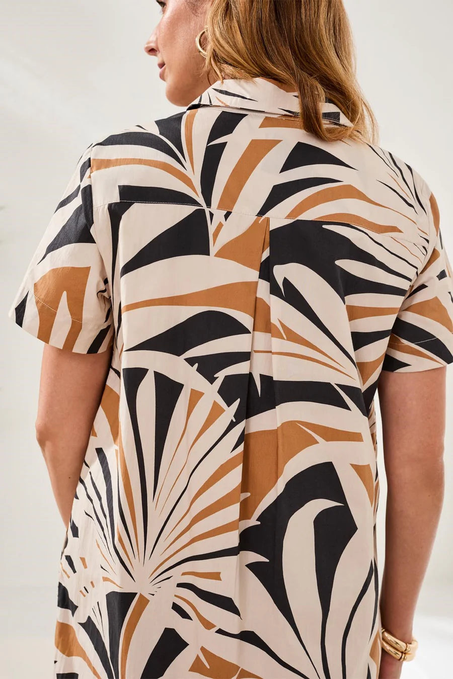 Bright prints and crisp cotton poplin create a statement in this short sleeve button up dress. The airy fit and 36" length are perfect for sunny days, adding polish and playful style to your warm-weather wardrobe.