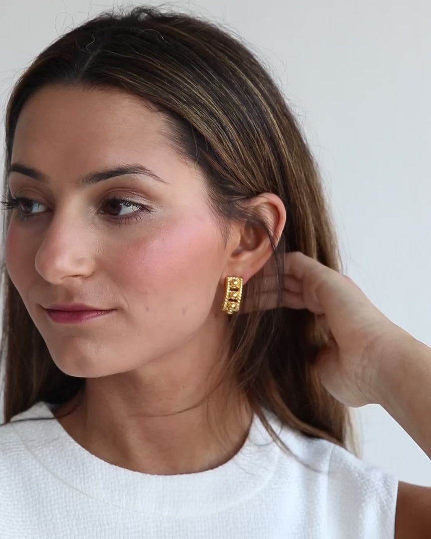 Capri Hoops are the playful, lightweight earrings you didn’t know you needed. With their delicate studded and twisted design, they add just the right amount of sparkle to any outfit—perfect for jet-setters ready to party. These hoops bring effortless style without weighing down your ears, making them your new everyday go-to accessory.