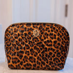 This beautiful vegan embossed croc leather pouch is part of our makeup and travel collection and features a stylish quilted fabric design. The elongated zipper provides easy access, making it perfect for organizing makeup, toiletries, and hair accessories. The spacious interior is lined with hot pink with a clear protective fabric that is easily wipeable. It also has mesh pockets to keep cosmetics neatly stored and accessible.