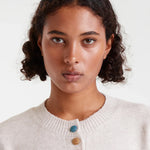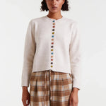 Cozy up in this beige knit cardigan, featuring a charming round neck and long sleeves perfect for layering. The playful multicolored buttons add a fun pop of color to your outfit, while ribbed details bring texture and style. It’s the perfect mix of comfort and quirk to brighten your day!