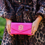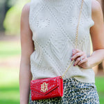 This playful wallet on chain doubles as a chic clutch with a removable chain for versatile wear. It boasts two compartments and credit card slots to keep your essentials organized. Big enough to fit your iPhone, it’s the perfect easy-to-grab bag for a night out or to toss inside your tote without any fuss.