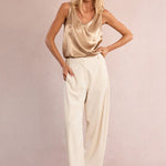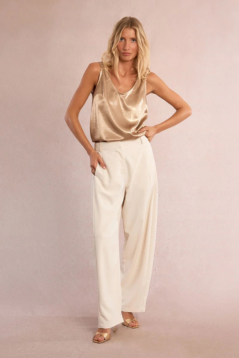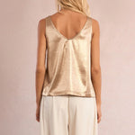 Elevate your wardrobe with the Celine Golden Tank, a sleeveless v-neck design crafted in a stunning shimmery gold hue. The lustrous finish catches the light beautifully, making it perfect for layering or wearing solo. Versatile enough for casual outings or dressed-up occasions, this tank offers effortless style and a flattering silhouette that works with any ensemble.