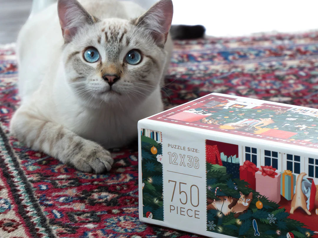 Ho ho ho and happy holidays! It's beginning to look a lot like Cat-mas in artist Laura Sant's cheer filled Kitty Christmas puzzle. Her sweet design is filled with kitties of all shapes and sizes, making this playful puzzle the purrfect way for puzzle and cat lovers to share a perfect day.