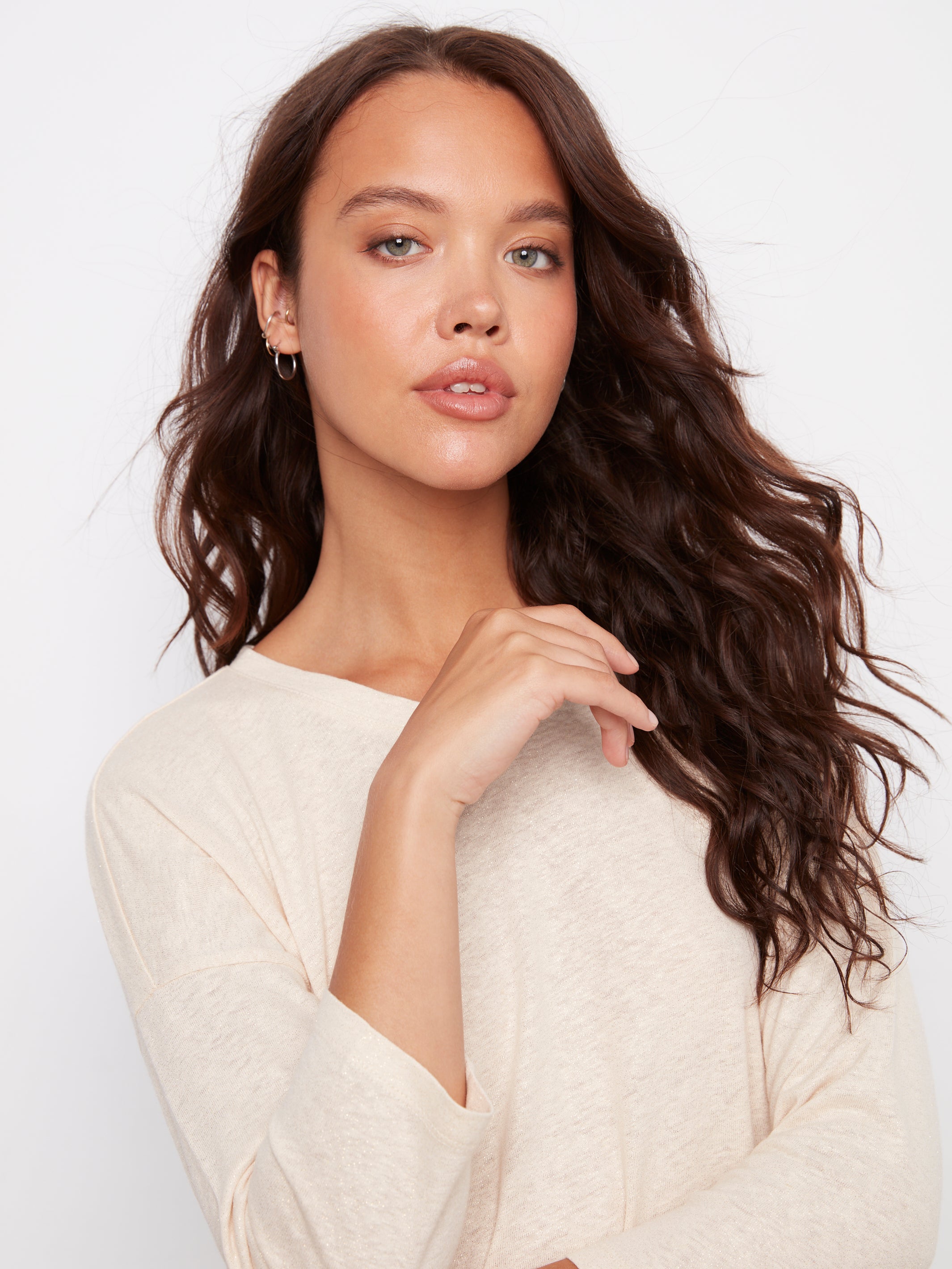 Elevate your casual wardrobe with the Cleo V-Neck Tee, featuring a stunning foil print that catches the light with every move. The flattering v-neckline and three-quarter sleeves strike the perfect balance between comfort and style, making it ideal for layering or wearing solo. Soft, breathable fabric keeps you cool while the eye-catching design turns heads. Whether you're heading out for a coffee run or a night with friends, this tee delivers effortless flair that works with everything in your closet.