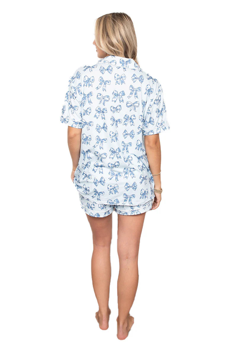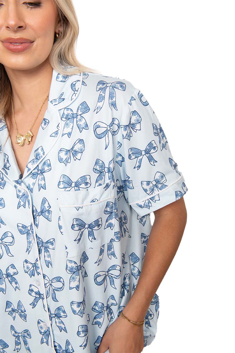 This Toile Coquette Bows PJ Set is the ultimate in cozy glam! Featuring a delicate, vintage-inspired bow print, these PJs add just the right amount of fancy to any lounge day. The shorts come with an elastic waistband, an adjustable drawstring, and pockets! Perfect for lazy Sundays, late-night FaceTime calls, or just feeling cute while doing nothing.