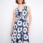 Step into the spring season with this floral dress, designed to blend effortless style with everyday comfort. The sleeveless silhouette and flattering V-neckline create a look that feels both relaxed and refined. Finished with a knee-length cut and a practical front zip closure, it’s a versatile piece suited for any occasion.