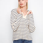 Throw on the Dianna Striped Hoodie for effortless style that works everywhere. This fun v-neck design features bold stripes and a playful high-low hem that keeps things interesting. Perfect for layering or wearing solo, it's your new go-to piece for casual comfort that doesn't compromise on personality. Cozy, versatile, and ready for whatever your day brings.
