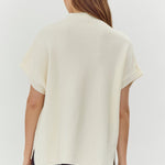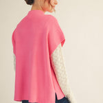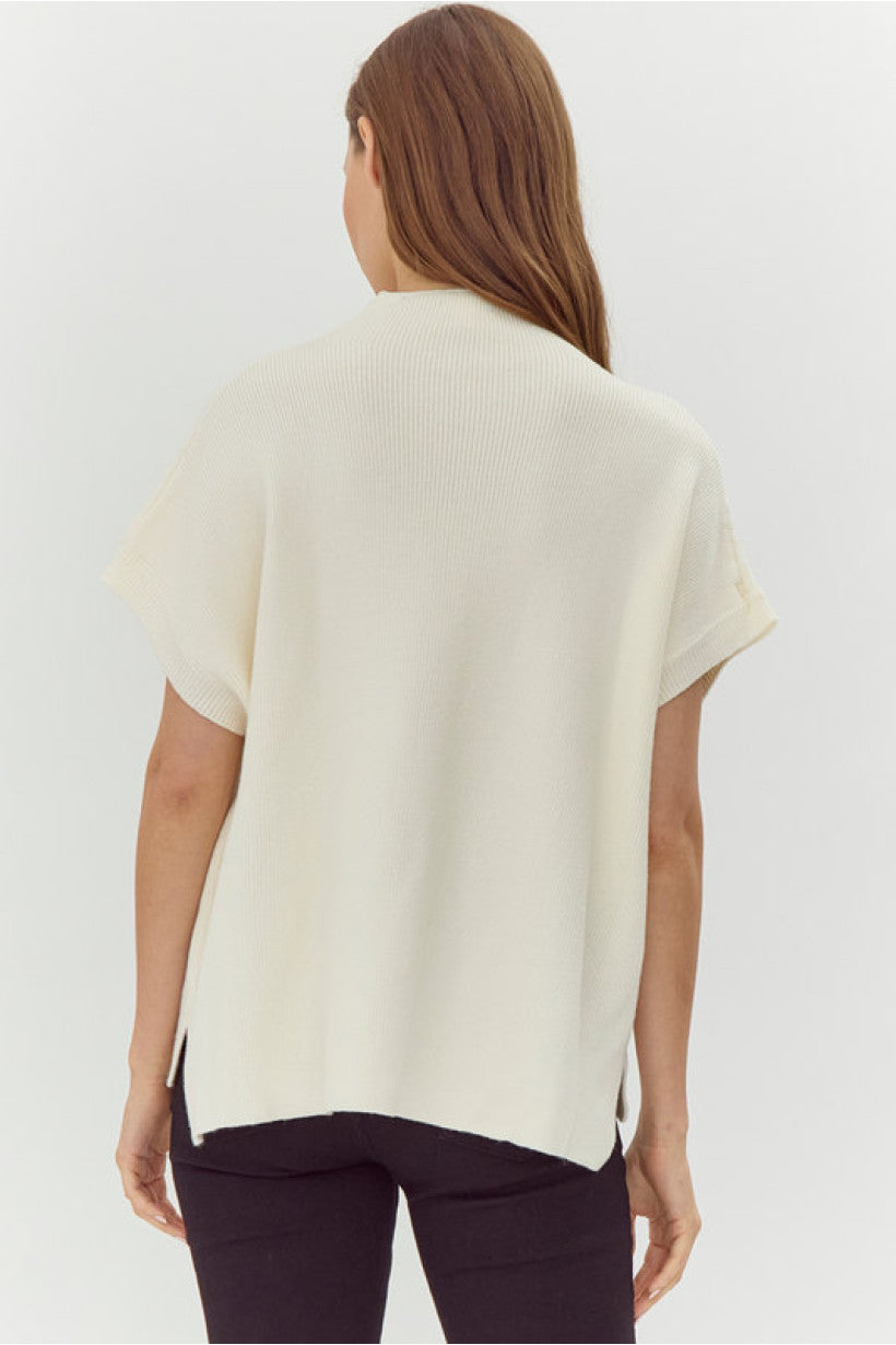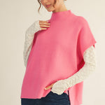 Cozy meets cool in this drop shoulder sweater top, featuring a chic mock neck and playful side slit detail. Perfect for layering or wearing solo, it adds a trendy twist to your casual wardrobe with effortless style and comfort.