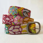 Gorgeous embroidered belts designed to be versatile with 5 sets of holes 2" apart - they can be worn at the hip or at the waist.