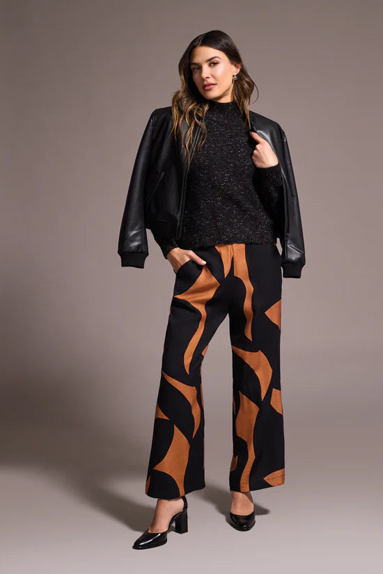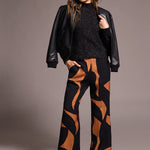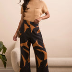 Add some fun to your wardrobe with these playful pants, showcasing a bold abstract print that turns heads. The flared legs sway with a retro vibe, perfect for dancing through the day. Slip your essentials into the handy front slash pockets, and enjoy the comfy, stretchy smocked waist that moves with you—all the style without any hassle.