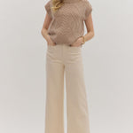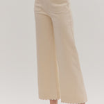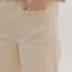 Elevate your everyday style with these cheeky high-waist wide-leg pants! Featuring adorable scallop trim detailing at the pockets and hem, they're anything but basic. The front patch pockets offer practical storage, while the zip fly button closure keeps everything secure. Crafted from lightweight woven fabric that's completely non-sheer, these pants deliver comfort without compromise.