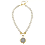 Gold & Silver Vintage Indian Head Coin on White Turquoise Necklace