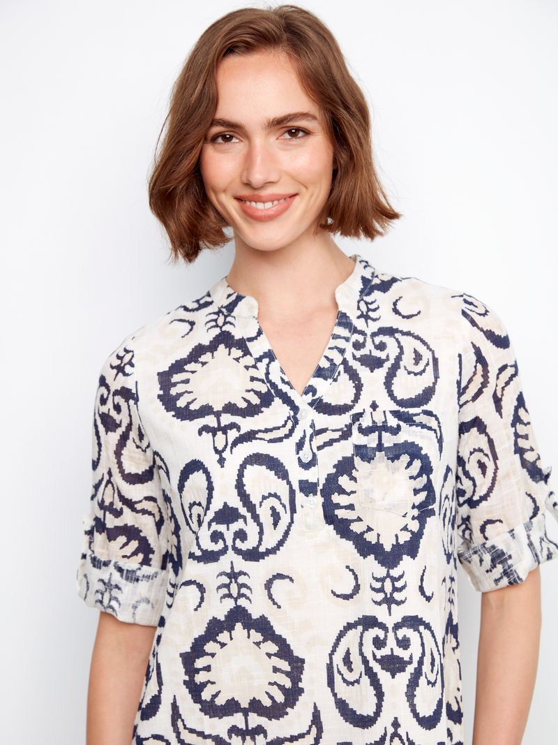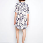 Effortless style meets comfort in this charming Henley dress. Featuring a classic navy and white color palette with an eye-catching design, this mini-length piece offers the perfect balance of casual and polished. The three-quarter sleeves provide versatile layering options for any season, making it an easy go-to for everything from weekend outings to casual gatherings.