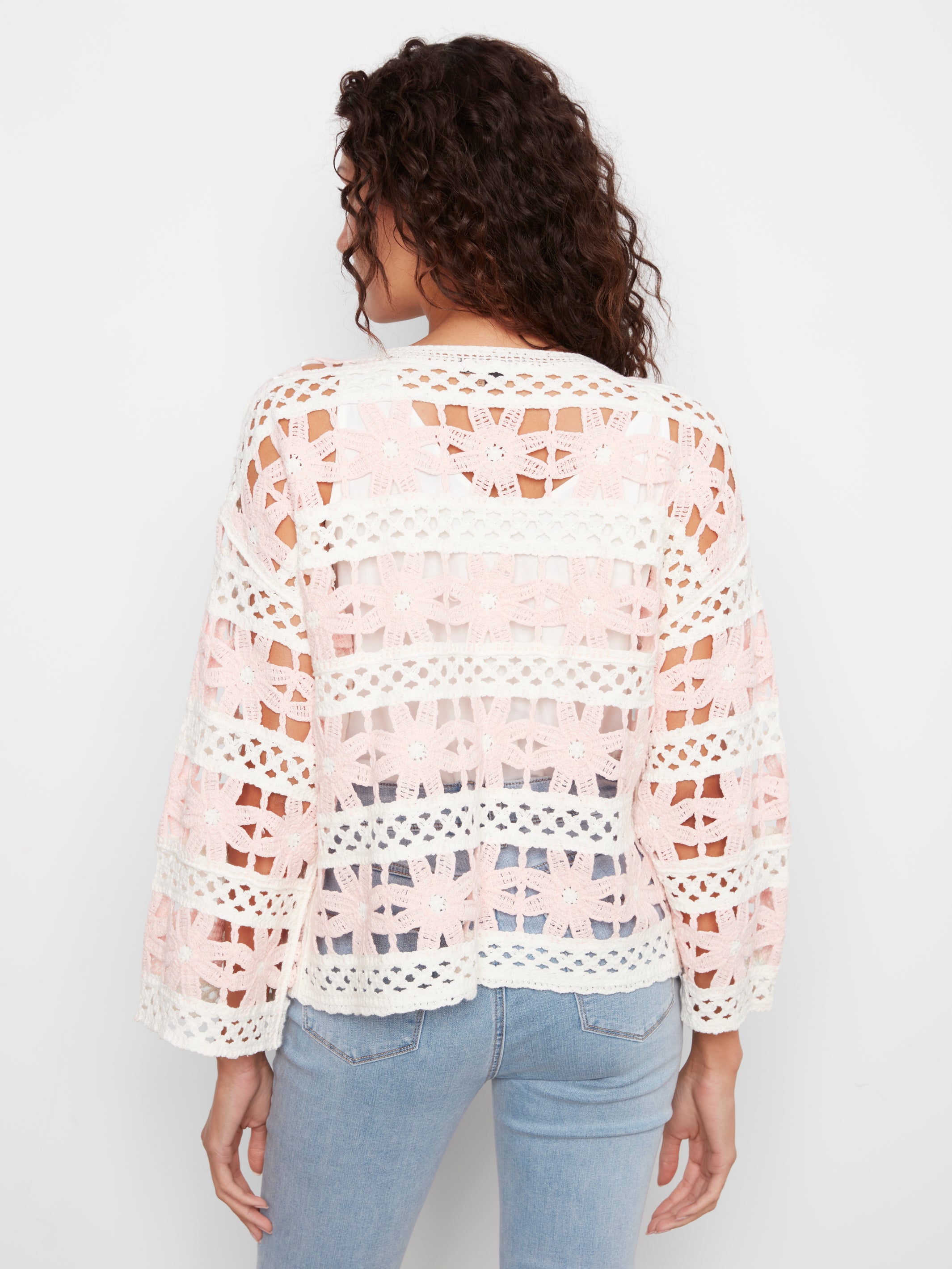 Brighten your wardrobe with the Isla Crochet Daisy Top—a playful 3/4 sleeve sweater that brings cheerful charm to any outfit. Hand-crocheted with delicate daisy details, this lightweight top layers beautifully over basics or stands alone as a statement piece. Perfect for casual days, weekend adventures, or whenever you want to add a touch of whimsy to your look. The relaxed fit and breathable construction make it ideal for year-round wear.