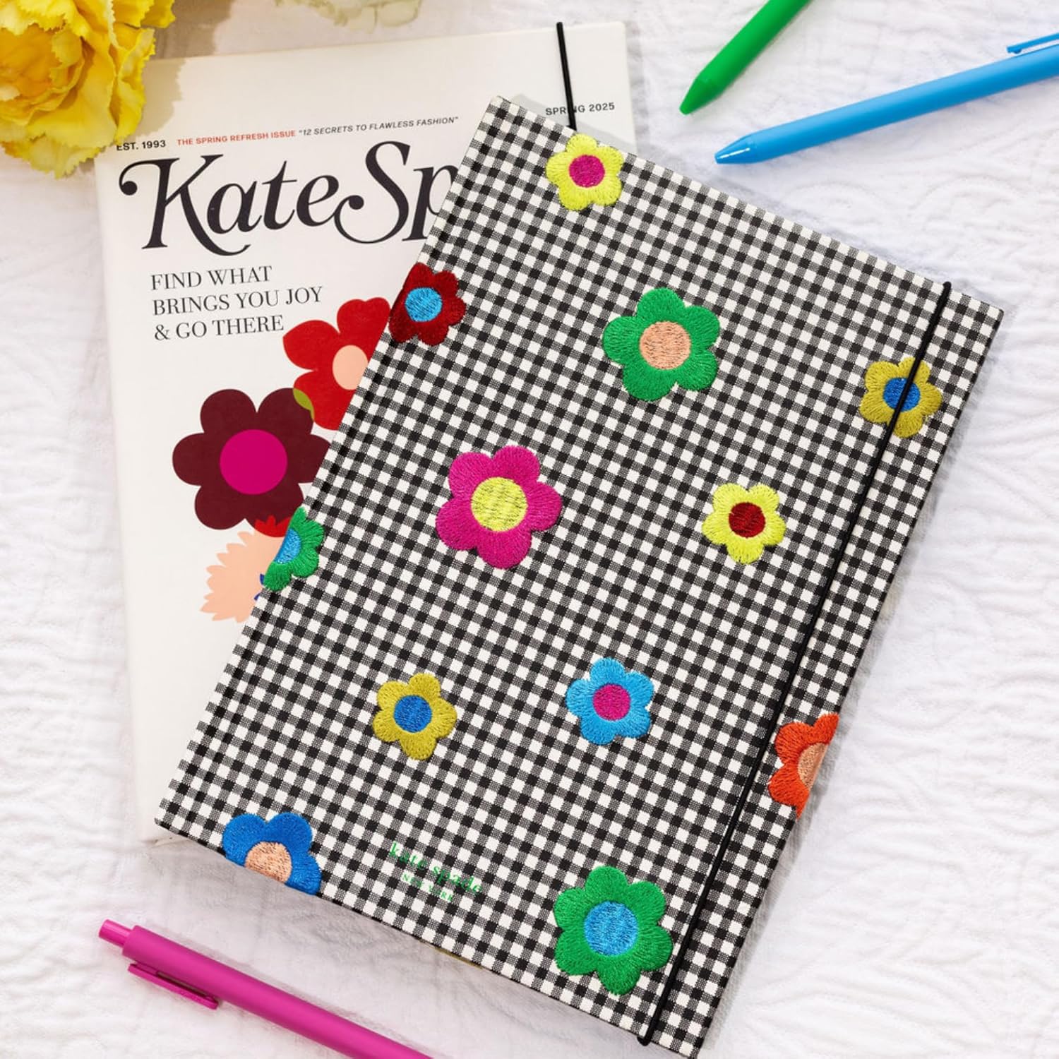 • The college ruled notebook has a built in bookmark for easy organization and an elastic band closure to keep pages secure while traveling. Go ahead and jot down goals, dreams, and desires in this eye-catching Kate Spade New York note book!