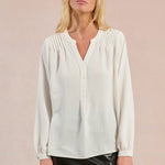 Timeless, polished, and endlessly wearable—this flowy button-down blouse is a wardrobe essential. Featuring a classic neckline and a relaxed silhouette, it drapes beautifully for that effortlessly chic look. Whether tucked into high-waisted trousers or worn loose over denim, it’s your go-to piece for workdays, weekends, and everything in between.