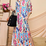 Slip into effortless style with this vibrant long sleeve shirt dress that's ready for anything. Crafted from 100% polyester for easy care and all-day comfort, it features a bold print that turns heads, practical side slits for movement, and hidden pockets because who doesn't love functional fashion? The perfect piece for dressing up or down—throw it on and go!