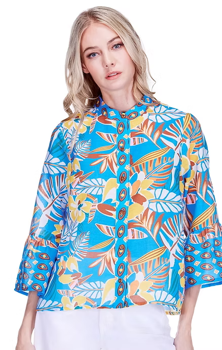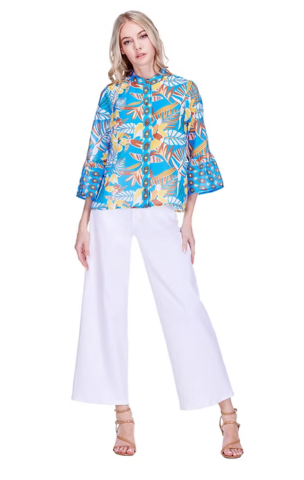 The Lourie Blouse features charming flutter sleeves and a vibrant, eye-catching print that brings instant personality to your wardrobe. This button-down style offers effortless versatility—dress it up for brunch or down for casual weekends. Perfect for adding a pop of color and playful flair to any outfit.