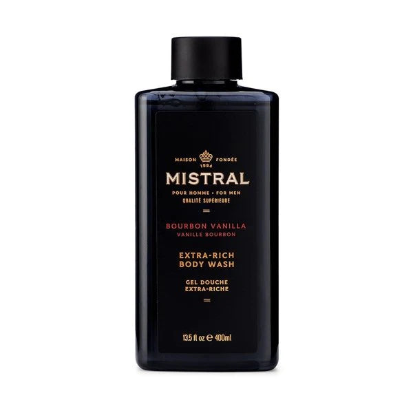 Mistral Bourbon Vanilla Body Wash is bold and alluring, the subtle sweetness of vanilla spiced with smoked oak and a twist of golden tobacco leaf delivers an elegant and distinguished scent with old world charm.