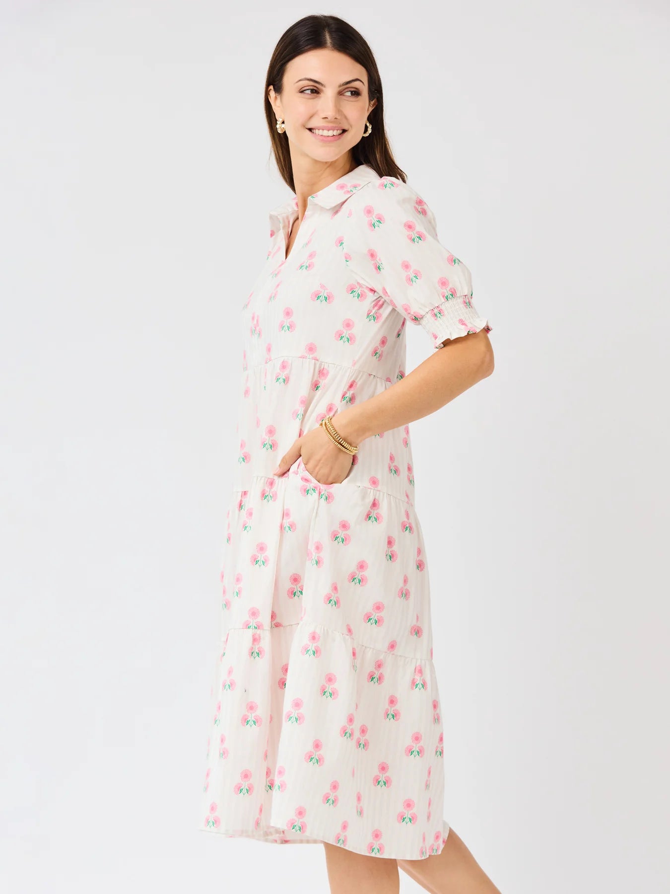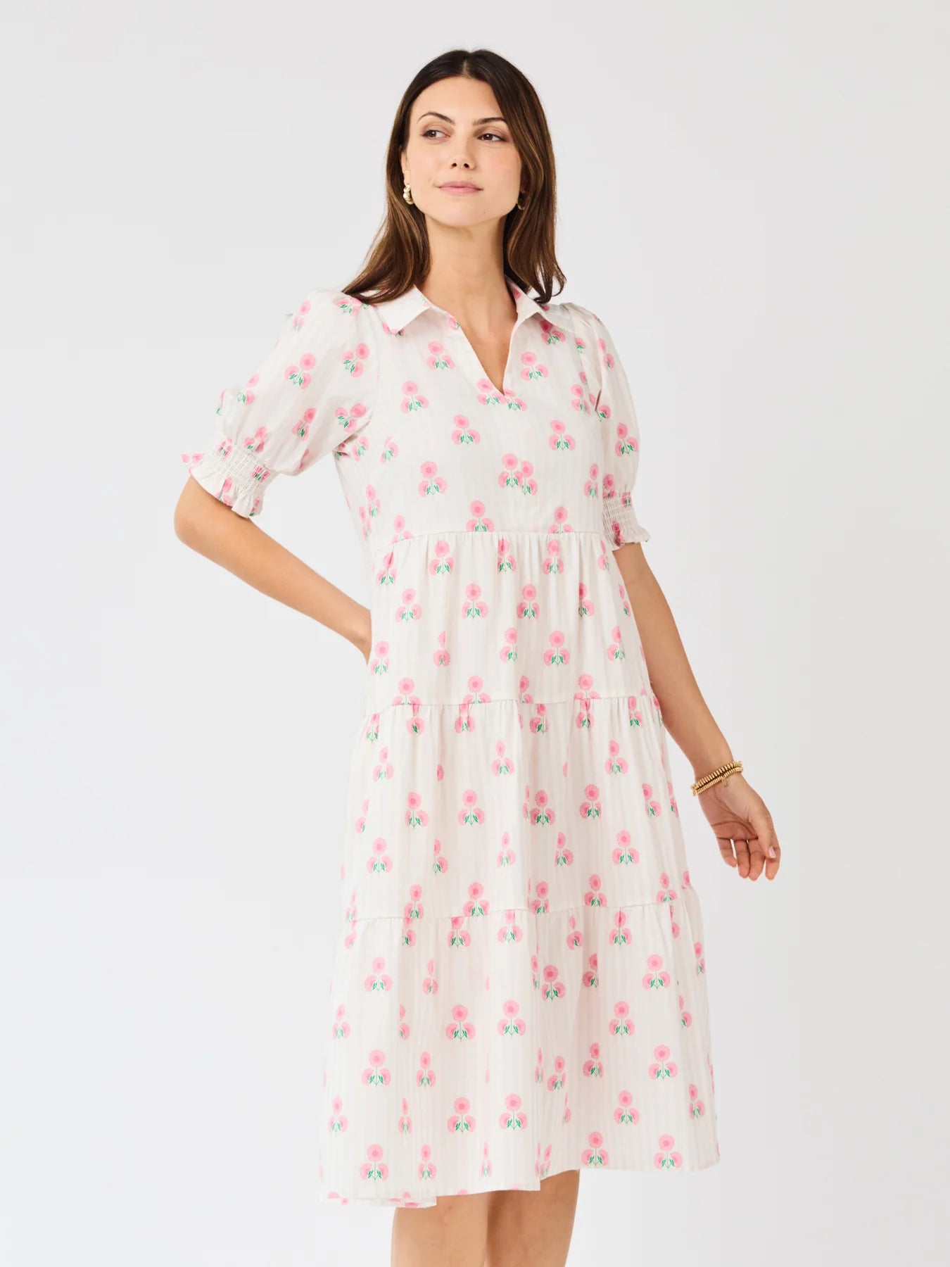 The Molly Dress is a best-selling favorite you’ll want to wear everywhere. Falling to a flattering midi length, it’s perfect for casual days or special occasions. A classic collar adds a touch of elegance, while smocked short puff sleeves bring playful, charming detail that makes getting dressed a little more fun.