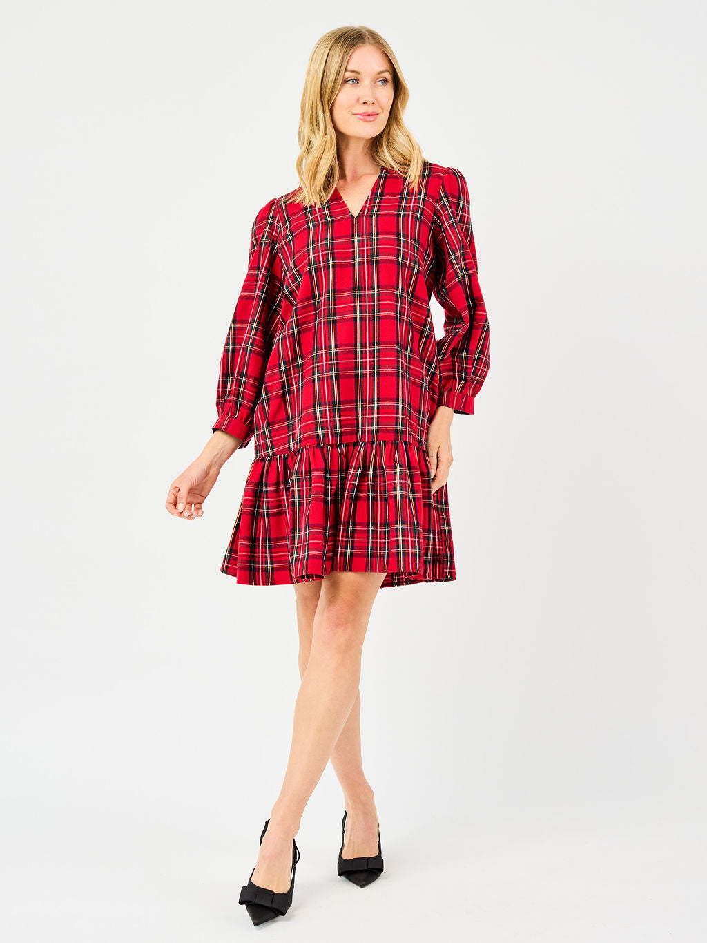 Celebrate the season in style with the Naomi Dress! This playful mini dress features a vibrant red plaid pattern perfect for holiday cheer. Its 3/4 sleeves and flared ruffle hem add a flirty touch, making it your go-to for festive parties and cozy gatherings. Embrace comfort and sparkle in this charming, easy-to-wear dress that brings out your holiday spirit!