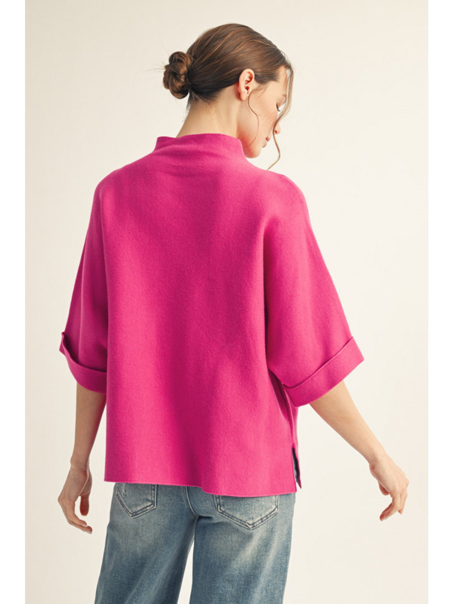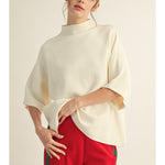 Elevate your wardrobe with our drop shoulder mock neck soft sweater top. Featuring a cozy mock neck and trendy side slit detail, this top will keep you warm and stylish all season long. Experience ultimate comfort and style with our must-have sweater.