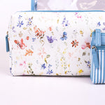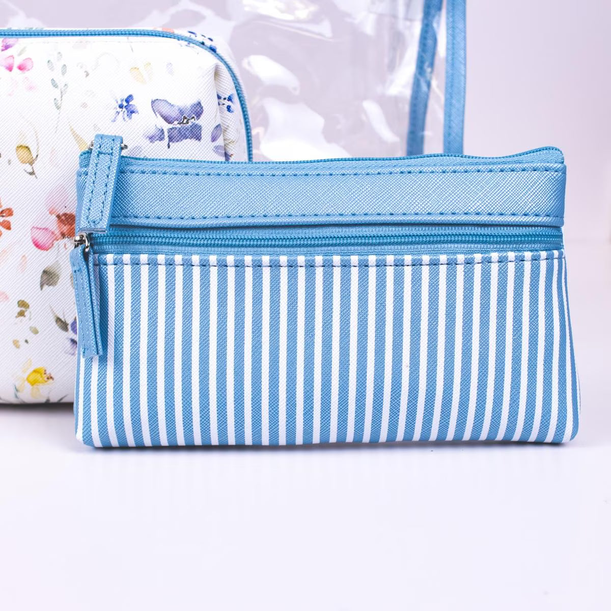 The Nora Travel Cosmetic Set in Blue/Multi is a versatile set of 3 compact bags designed for organizing your beauty essentials while on the go. With dimensions of 12x8.25x3.5, this set provides ample space for all your travel-sized cosmetics.