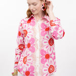 Brighten your spring wardrobe with this cheerful button-down floral top! Featuring a vibrant pop flower border design, it's the perfect piece to add personality and color to your seasonal style. The playful pattern and fun hues make it ideal for casual outings, weekend adventures, or whenever you want to bring a smile to your look. Comfortable, versatile, and undeniably charming—this top is your new spring essential.