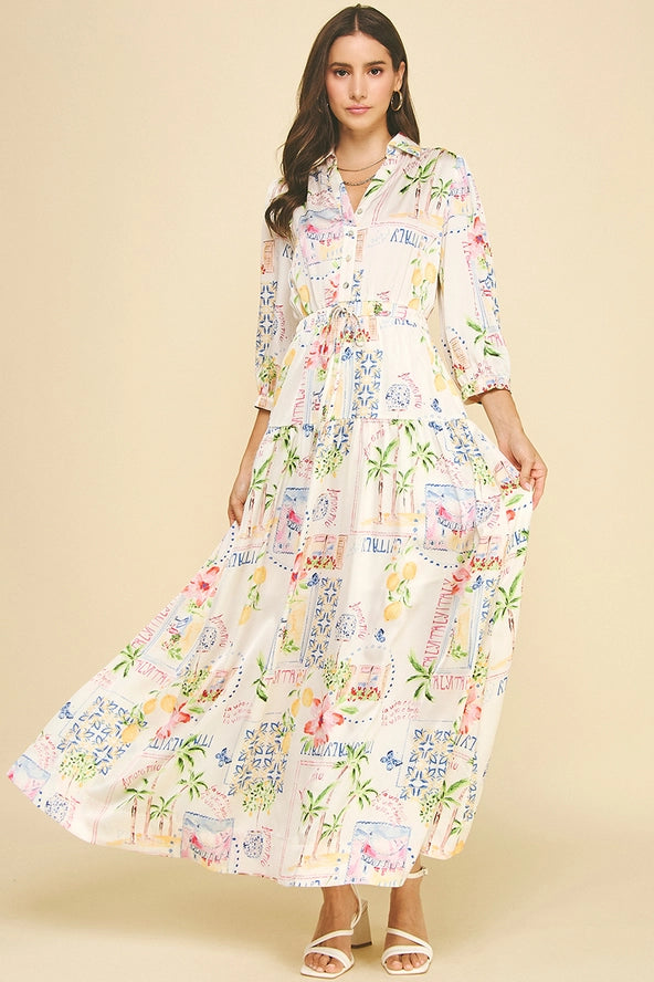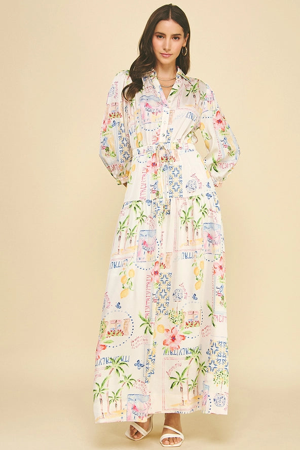 Effortlessly chic and undeniably fun, this Print Button Down Maxi Dress brings personality to your everyday rotation. The flattering V-neck and classic button-front design offer timeless appeal, while playful balloon sleeves with tucked details add a whimsical touch. Perfect for dressing up or down, this maxi silhouette keeps you comfortable and stylish from morning to night.