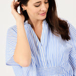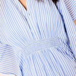 The Priscilla Short Beach Dress is your go-to cover-up for sun-soaked days by the water. Featuring a flattering high-waist cut and lightweight fabric, this dress moves effortlessly from beach to poolside. The charming blue stripe pattern adds a fresh, feminine touch that complements any swimwear. Slip it on over your bathing suit for easy coverage and breezy comfort all day long.