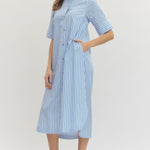 The Reese Dress is your go-to for effortless summer style. This breezy maxi features classic blue and white stripes that work from beach days to casual dinners out. The relaxed fit keeps you cool and comfortable, while the timeless pattern pairs with everything in your closet. Throw on some sandals and you're ready to turn heads.