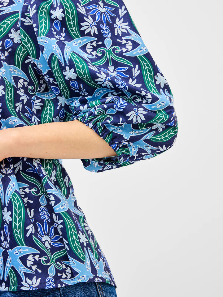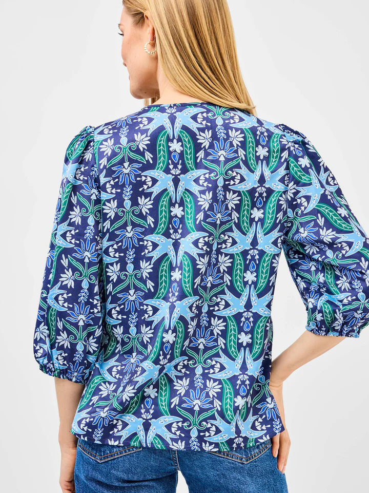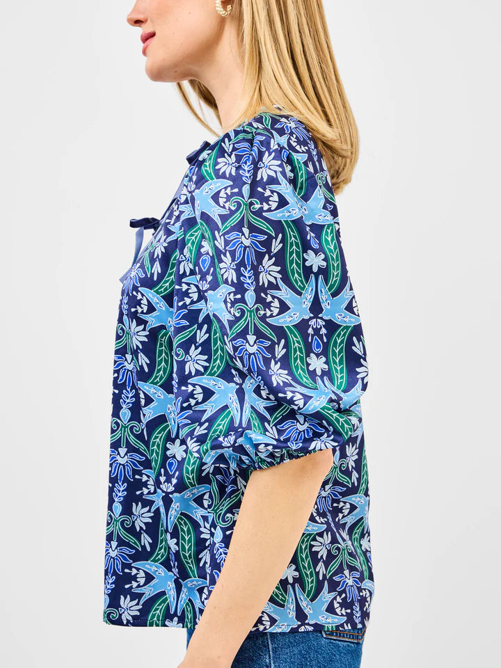 The Ren Top offers a modern twist on feminine elegance. Featuring short puff sleeves with elastic cuffs and delicate velvet tie details, this piece is tailored in a flattering straight fit. Effortlessly stylish, it pairs beautifully with everything from jeans to skirts.