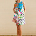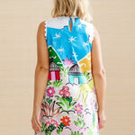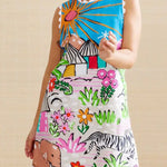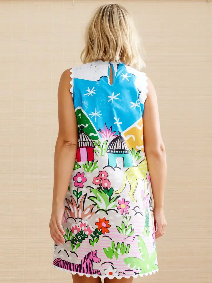Twirl into fun with this whimsical painted linen mini dress! Featuring a vibrant oil painting print that brings artistic flair to everyday wear, this loose-fitting style keeps things breezy and comfortable. Playful ric rac trim dances along the collar, sleeves, and hemline, adding a charming vintage-inspired touch. Perfect for those who love bold prints and a little extra personality in their wardrobe.