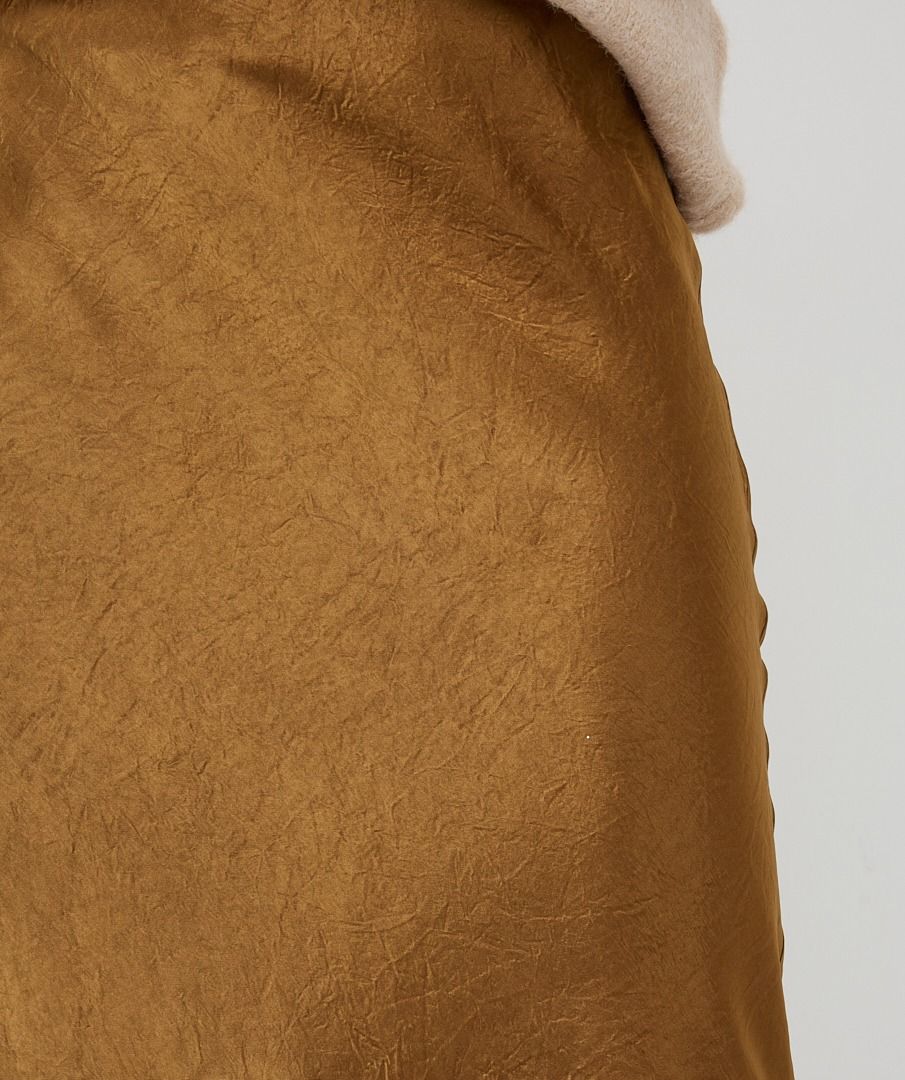 Beautiful satin crinkle look skirt with beautiful sheen. The skirt has an elastic waistband and pairs nicely with sweaters from the collection. The skirt is made of 100% viscose. Model is 1.73m and wears size S.