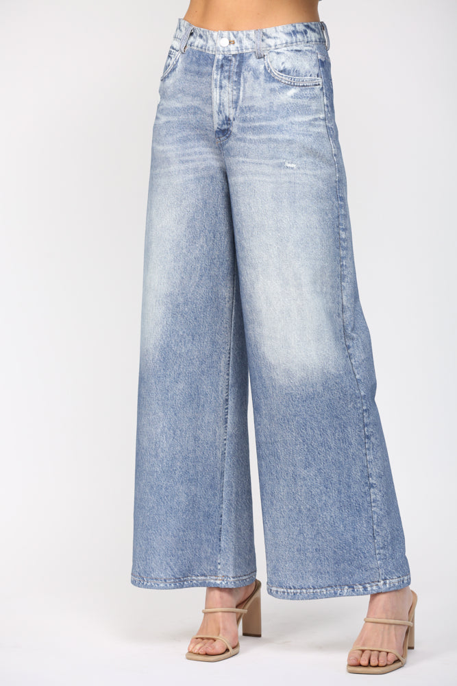 Elevate your loungewear game with these playful washed denim print wide leg French terry pants. Crafted from 100% soft cotton, they deliver that cozy sweatpant comfort with a cheeky denim vibe. The relaxed wide-leg silhouette offers effortless style whether you're running errands or settling in for the day. Perfect for anyone who refuses to choose between looking put-together and feeling amazing. Our model (5'9½") shows how they drape beautifully for a flattering fit.