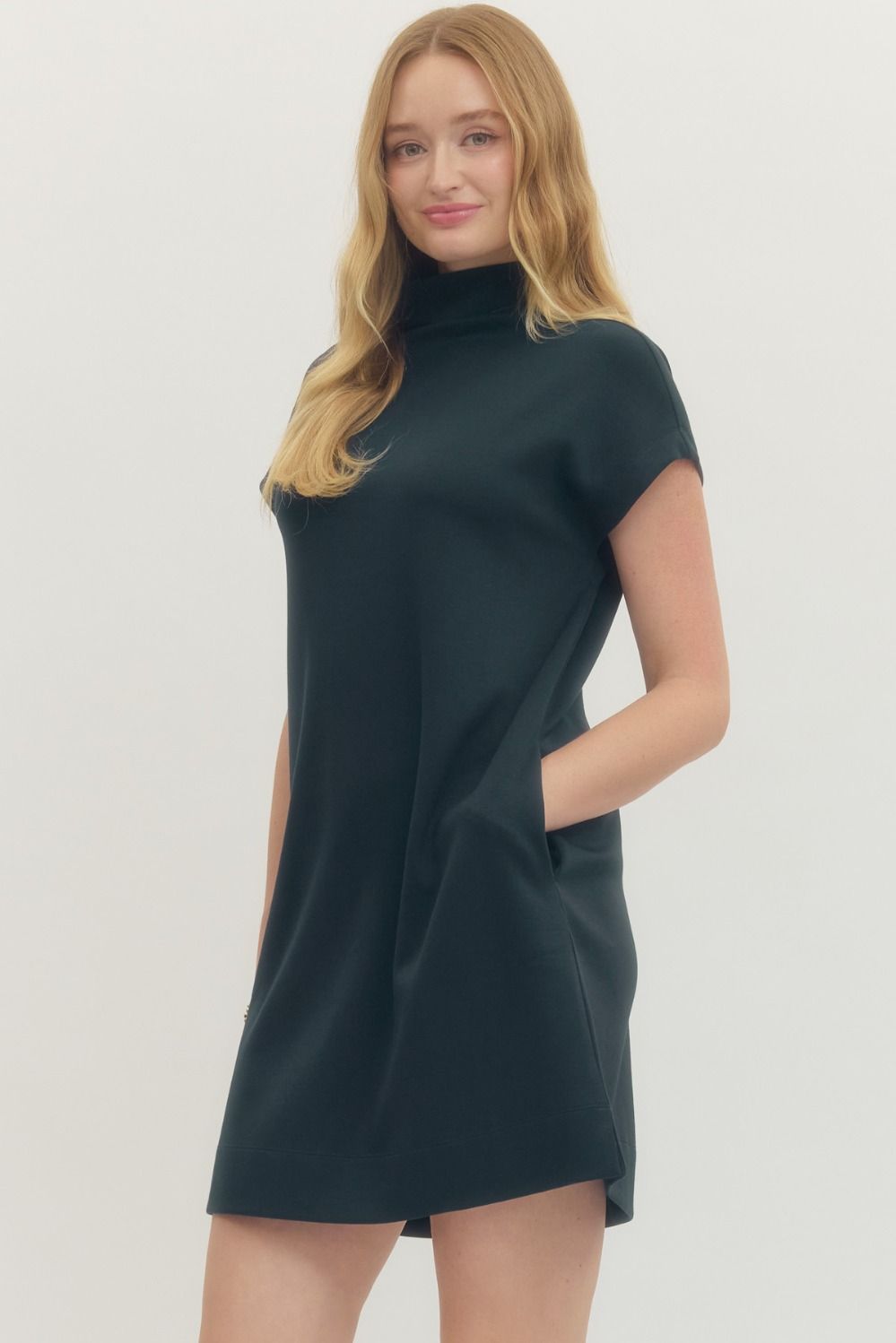 Slip into effortless style with this cozy jersey mock neck pullover mini dress. Crafted from lightweight knit fabric that's perfectly non-sheer, it's your go-to for casual days when comfort meets chic. Practical side pockets keep your essentials close, while the unlined construction keeps things breezy. Whether you're running errands or grabbing coffee with friends, this dress delivers laid-back sophistication without the fuss.