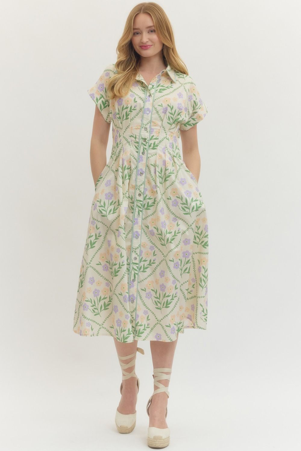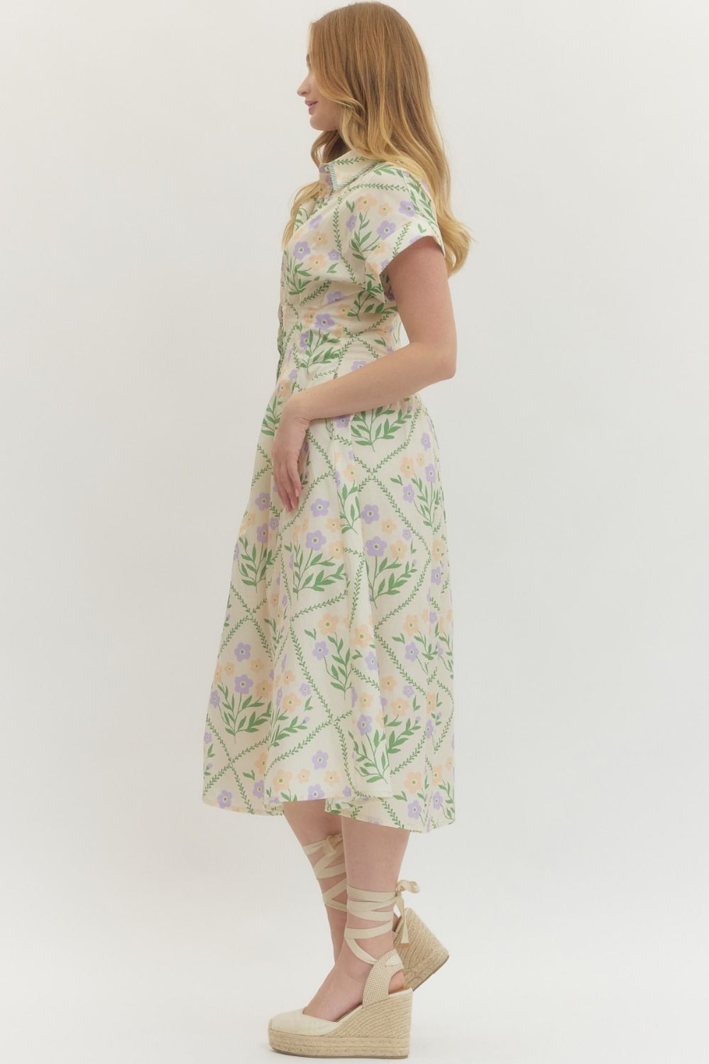 Bloom into your day with this charming floral midi dress! Featuring a classic shirt collar and button-front design, it's effortlessly put-together for any occasion. The lightweight woven fabric keeps you cool and comfortable, while the lined construction ensures a polished look. Practical side pockets add a functional touch, and the non-sheer material gives you confidence all day long. Perfect for brunch dates, casual outings, or whenever you want to feel fresh and fabulous.