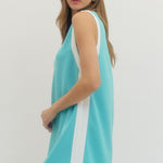 Rock that effortless varsity vibe with this sleek mini pullover dress! Crafted from lightweight knit fabric, it features bold contrast band detailing that gives major athletic-chic energy. The unlined, non-sheer construction keeps things comfortable and breathable, while the sleeveless silhouette is perfect for layering or going solo. Whether you're channeling retro prep or modern sporty style, this dress delivers attitude without the fuss.