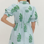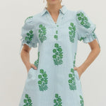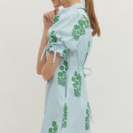 Twirl into spring with this charming striped floral mini dress! The collared V-neck and adjustable back drawstring create a flattering silhouette, while elasticated puff sleeves with tie details add a playful touch. Practical side pockets keep your essentials close, and the lightweight woven fabric keeps you cool and comfortable all day long. Non-sheer and unlined for easy styling—dress it up or down for endless possibilities.