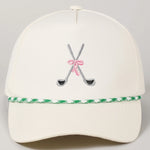 Rock a playful vibe with our adorable trucker hat, featuring your choice of embroidered golf clubs or tennis racquets. Perfect for sports enthusiasts and casual style lovers alike, this lightweight cap keeps the sun out of your eyes while showing off your favorite pastime. The classic trucker silhouette with mesh back panels ensures breathability for all-day comfort. Whether you're heading to the course, the court, or just running errands, this cute accessory adds personality to any outfit.