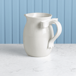 White Bow Pitcher. This elegant ceramic pitcher showcases a beautifully sculpted bow handle, adding a touch of sophistication to any table setting. Crafted from high-quality stoneware, it ensures durability and a timeless appeal. Perfect for serving beverages or as a decorative piece, its sleek white finish complements any decor style. Ideal for both everyday use and special occasions, this pitcher combines functionality with a charming design, making it a must-have addition to your kitchenware collection.