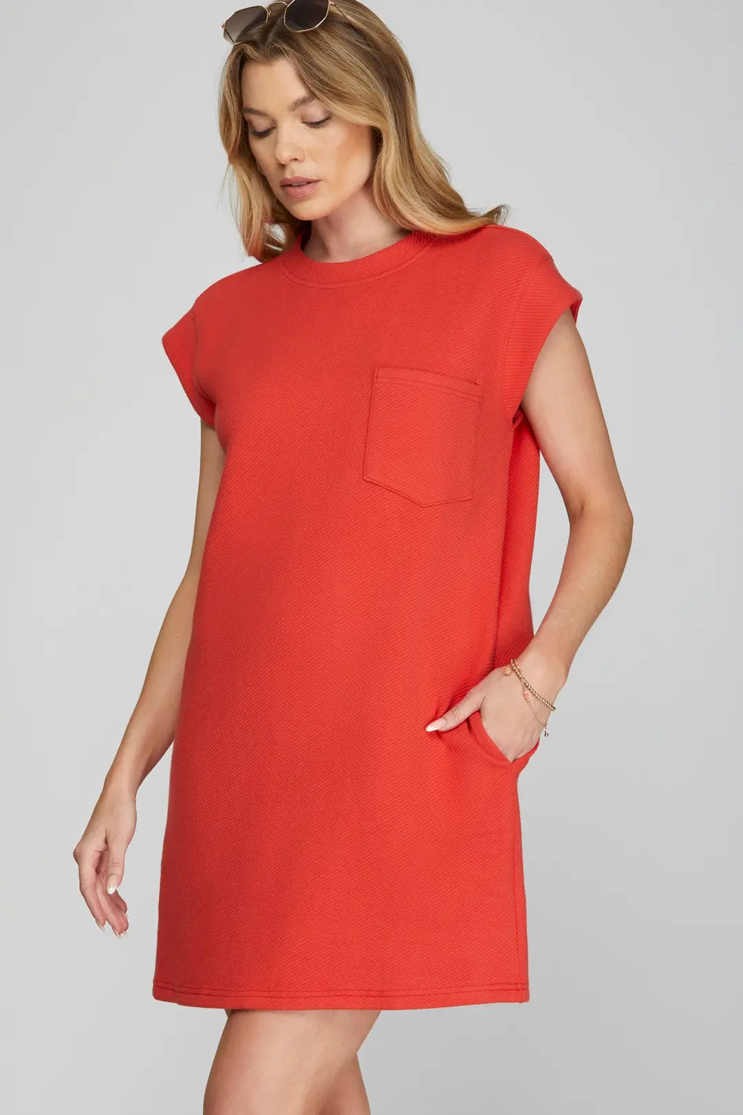 SLEEVELESS TEXTURED MINI DRESS WITH SIDE POCKETS