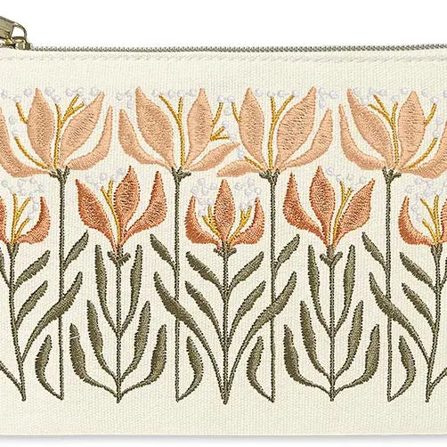 Keep your essentials in style with this charming embroidered zip pouch! Crafted from printed canvas with a soft lining and gleaming gold metal zipper, it's the perfect companion for organizing everything from cosmetics to coins. Whether you're tossing it in your bag or displaying it on your desk, this little beauty keeps your small treasures safe and looking fabulous. Compact, secure, and undeniably cute!